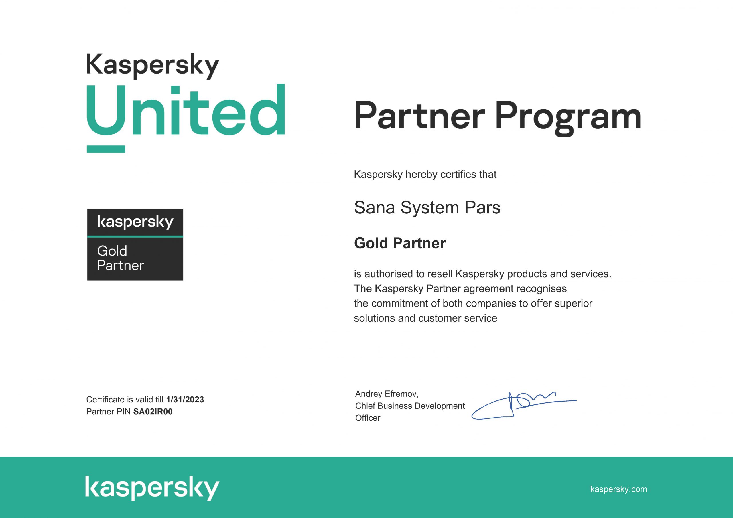 شرکت سانا سیستم پارس نمایندگی کسپرسکی یکی از نماینده های رسمی سطح طلایی محصولات کسپرسکی در ایران می باشد.